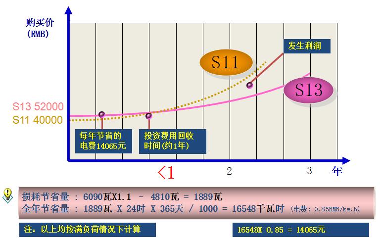 單臺預計節能效果 (500kVA) S13I級與S11國標比較